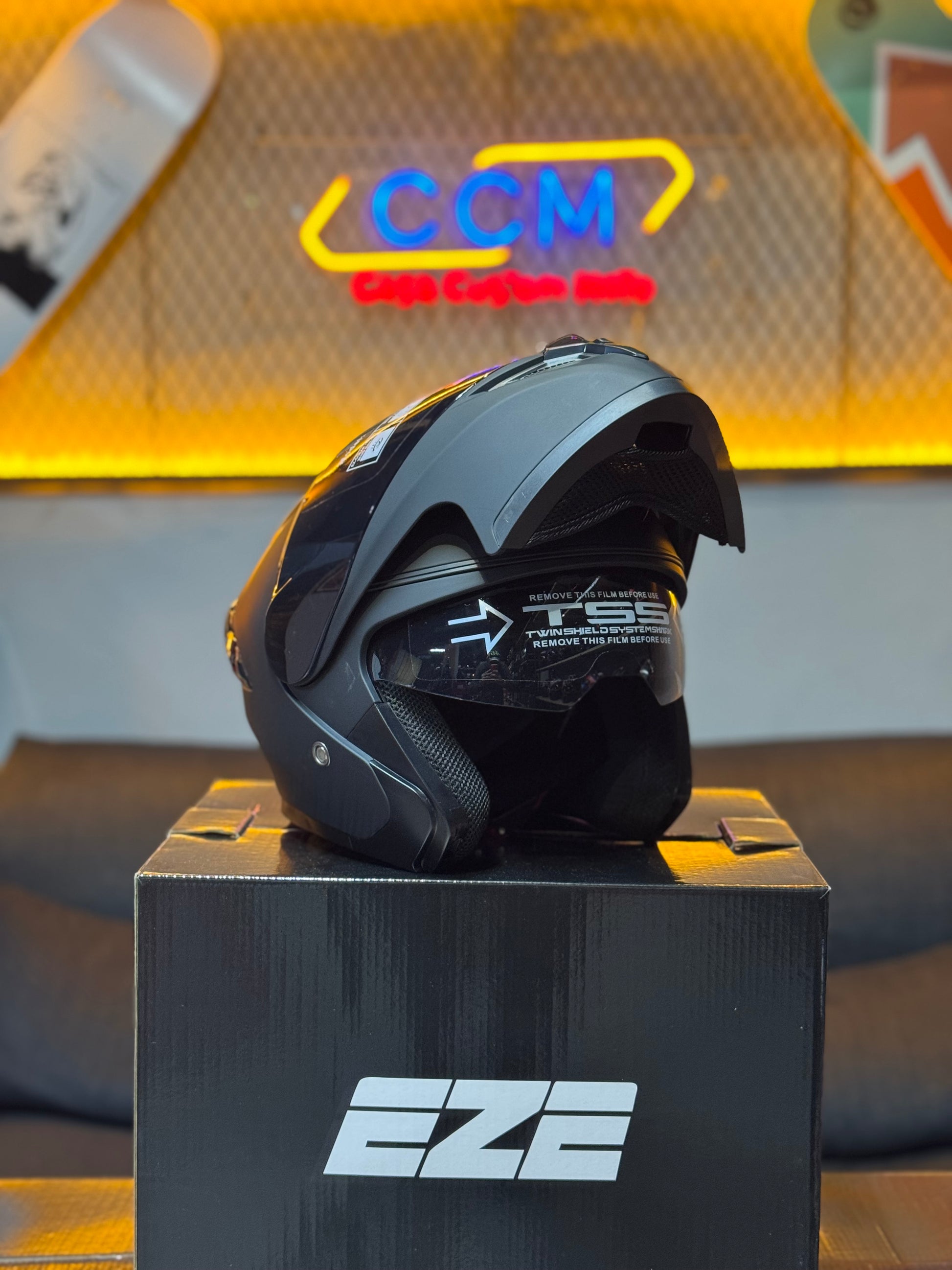 Découvrez la polyvalence du casque EZE modulable, conçu pour vous accompagner au quotidien, en ville comme sur route. Son design full black sobre et moderne s’adapte à tous les styles de conduite. Équipé d’une double visière, fumée et transparente, il offre confort et praticité pour une utilisation simple et efficace.